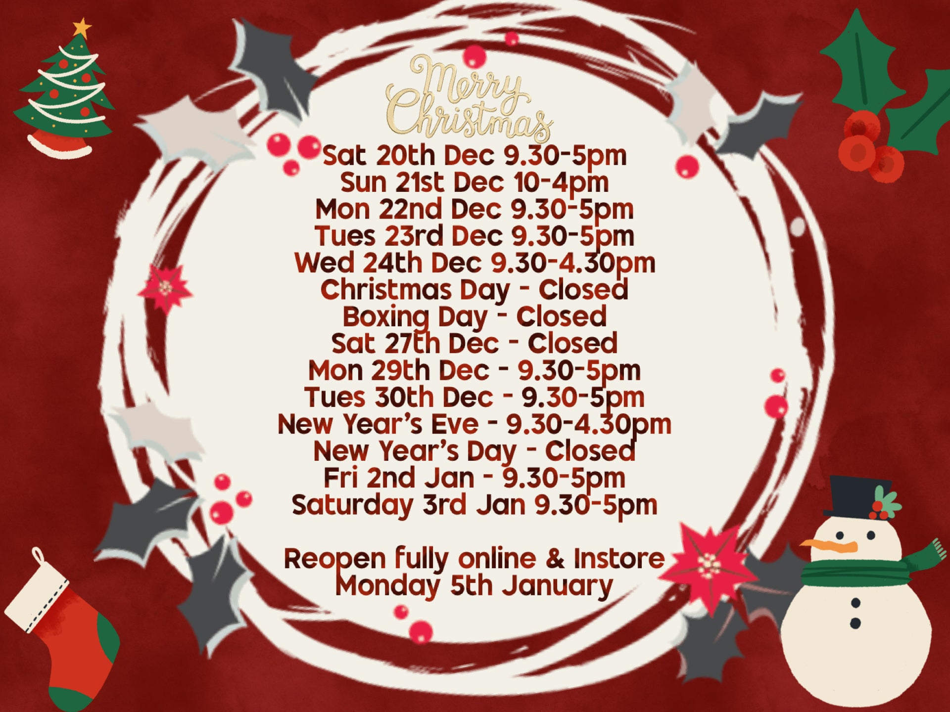 MONDAY 5th JANUARY 9.30-5pm