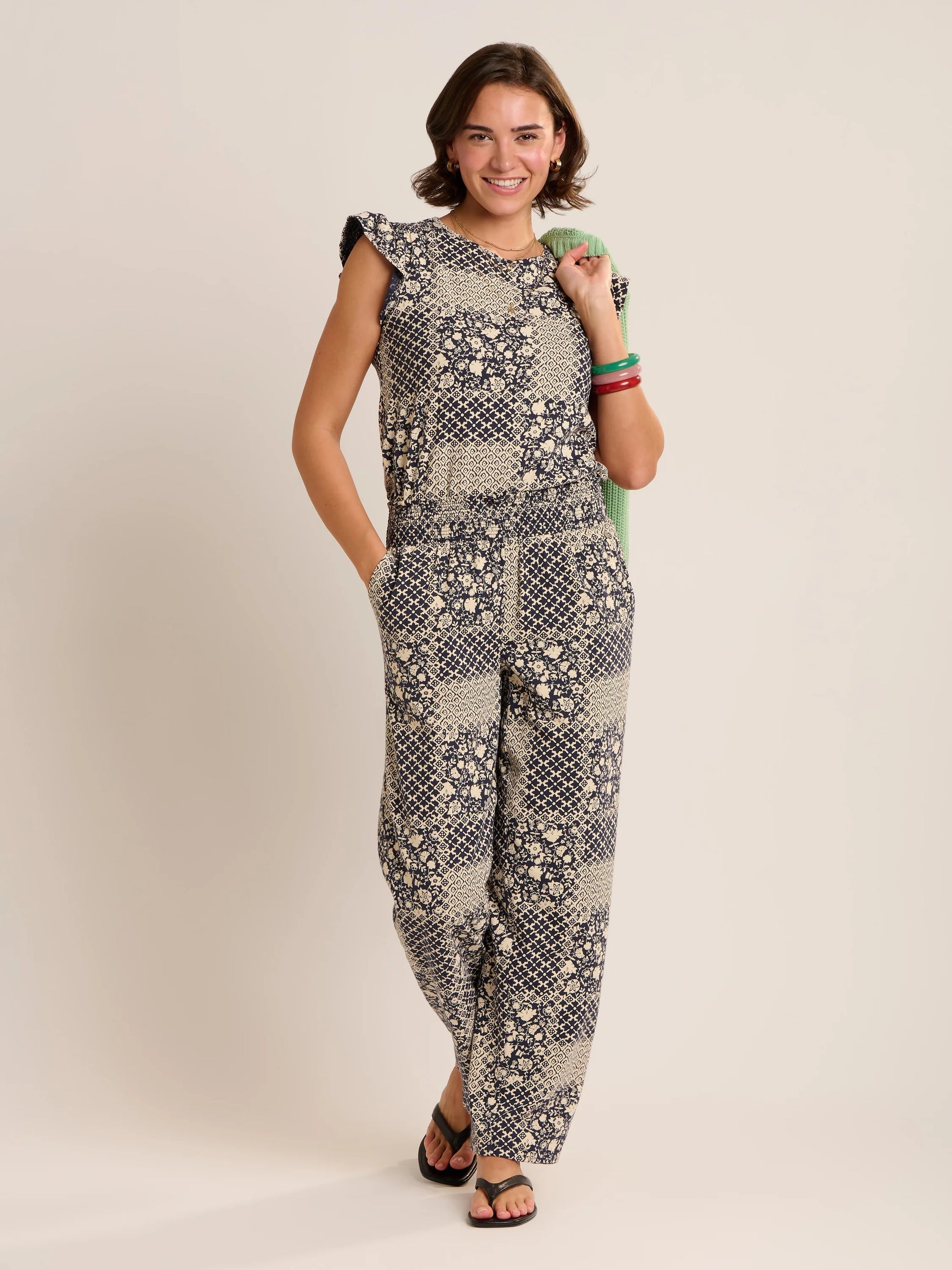 Brakeburn Helena Patchwork Print Beach Pants - Navy/Ecru