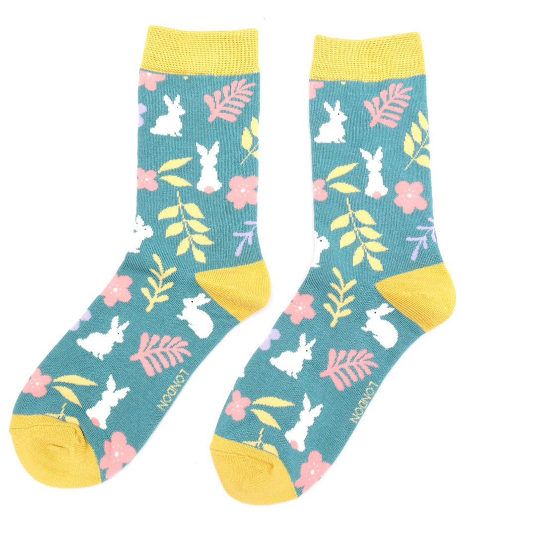 Miss Sparrow Bamboo Ankle Socks - Bunnies - Teal