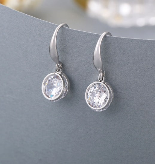 Gracee Jewellery Silver Round Crystal Drop Earrings