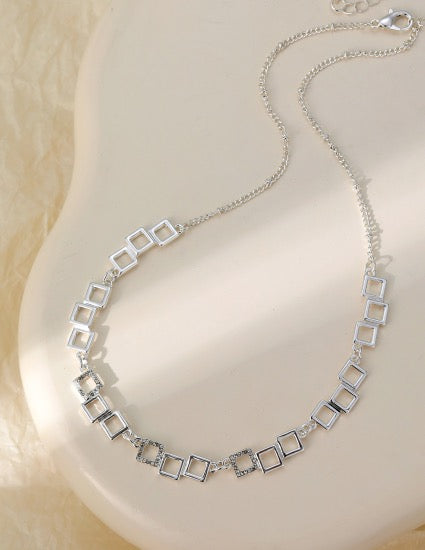 Gracee Jewellery - Linked Squares Silver & Crystal Necklace - Silver