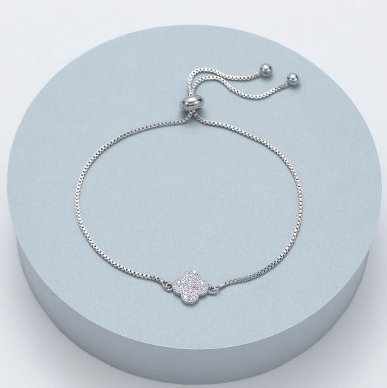Gracee Jewellery - Crystal Clover Silver Plated Slider Adjustable Bracelet