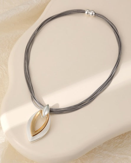 Gracee Jewellery Multi Grey Cord Magnetic Necklace with Pointed Oval Pendant - Silver/Gold