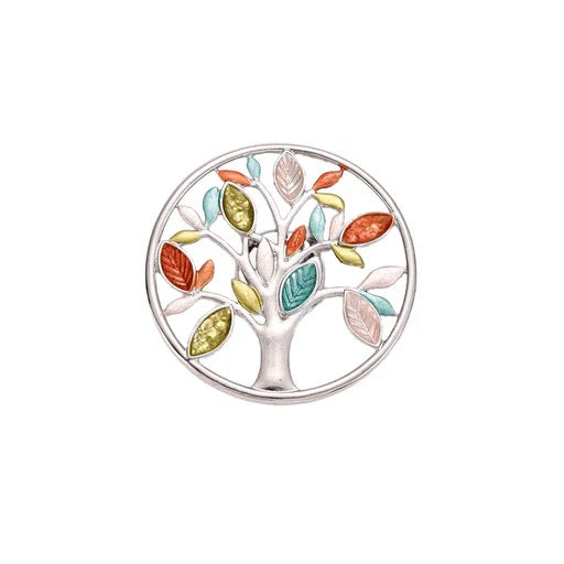 Park Lane Multicoloured Leaf Enamel & Silver Tree of Life Brooch