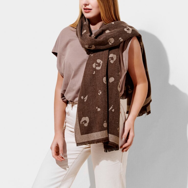Katie Loxton Large Leopard Print Blanket Scarf - Taupe/Dark Brown