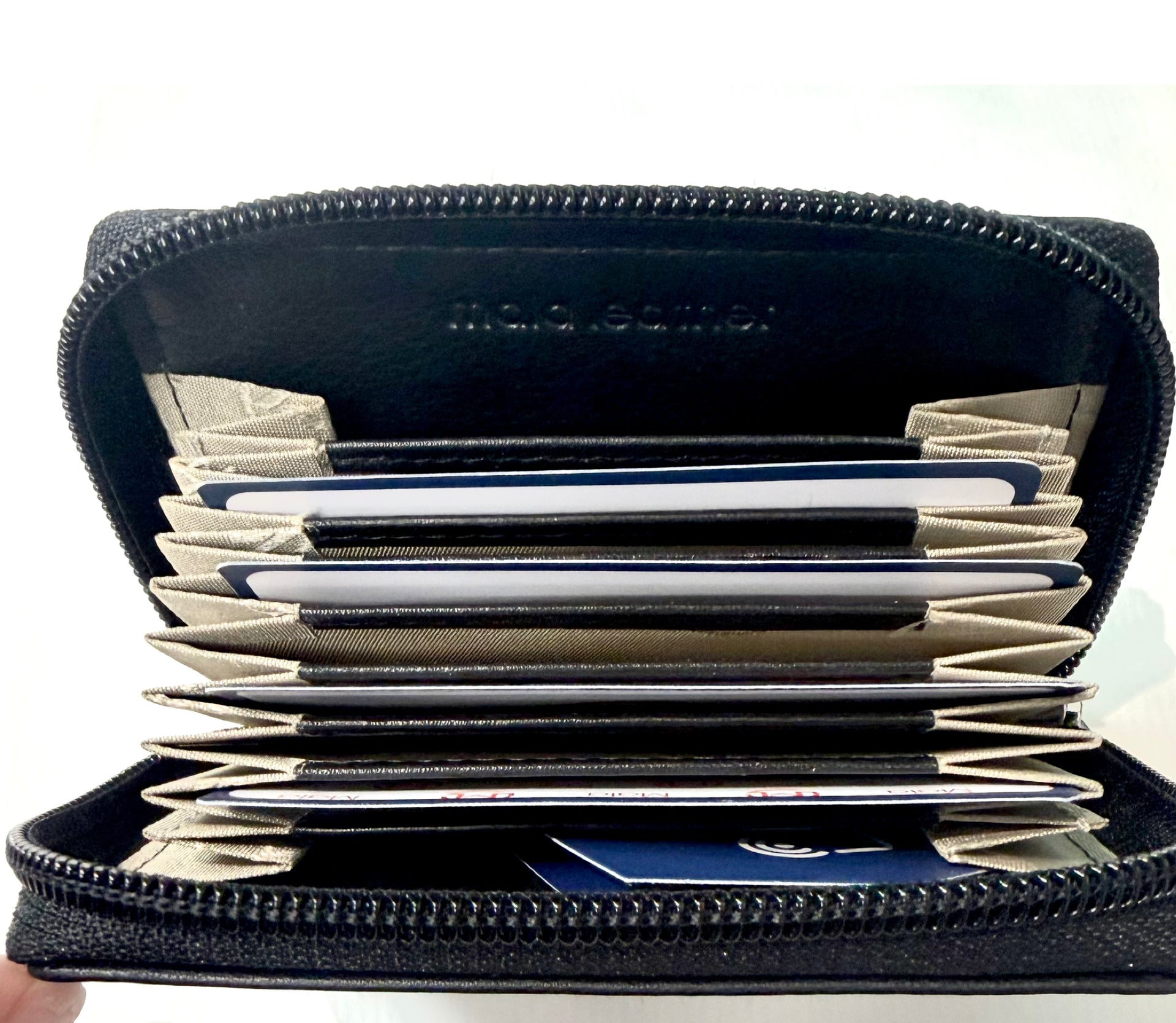 Many of Malas products now have RFID protection. This protection is placed under the outer layer of leather and will keep you information safe when enclosed in the product.