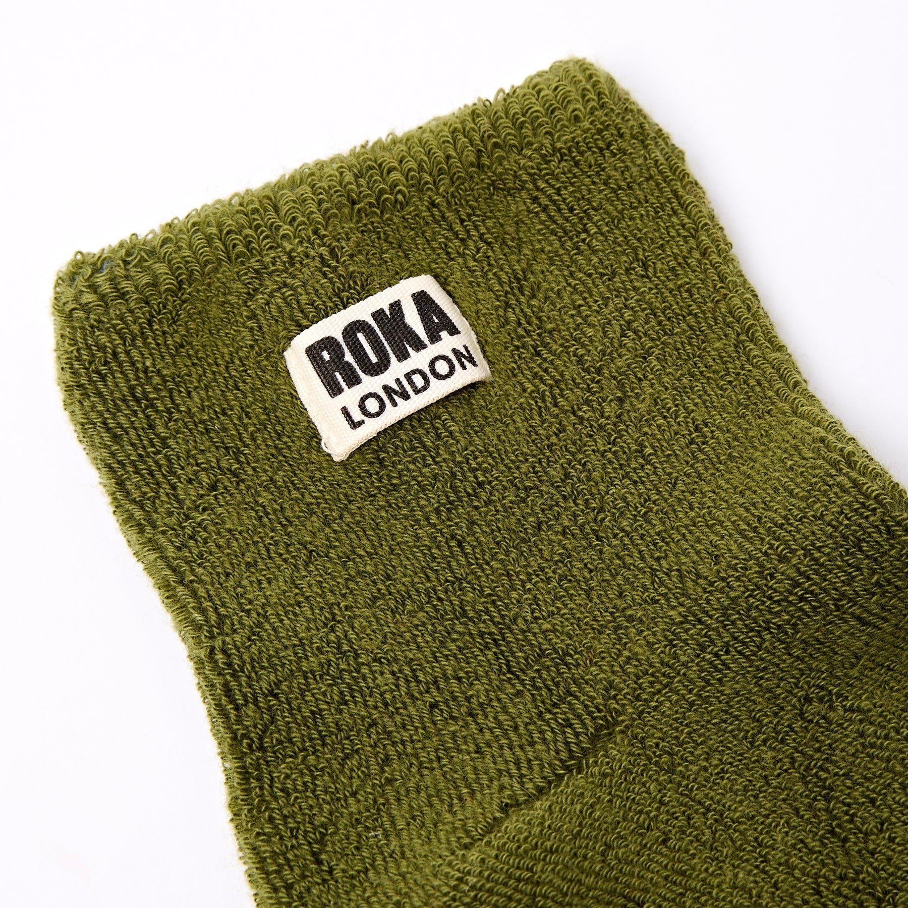 ROKA Watford Ladies Crop Towelling Socks - Avocado Green