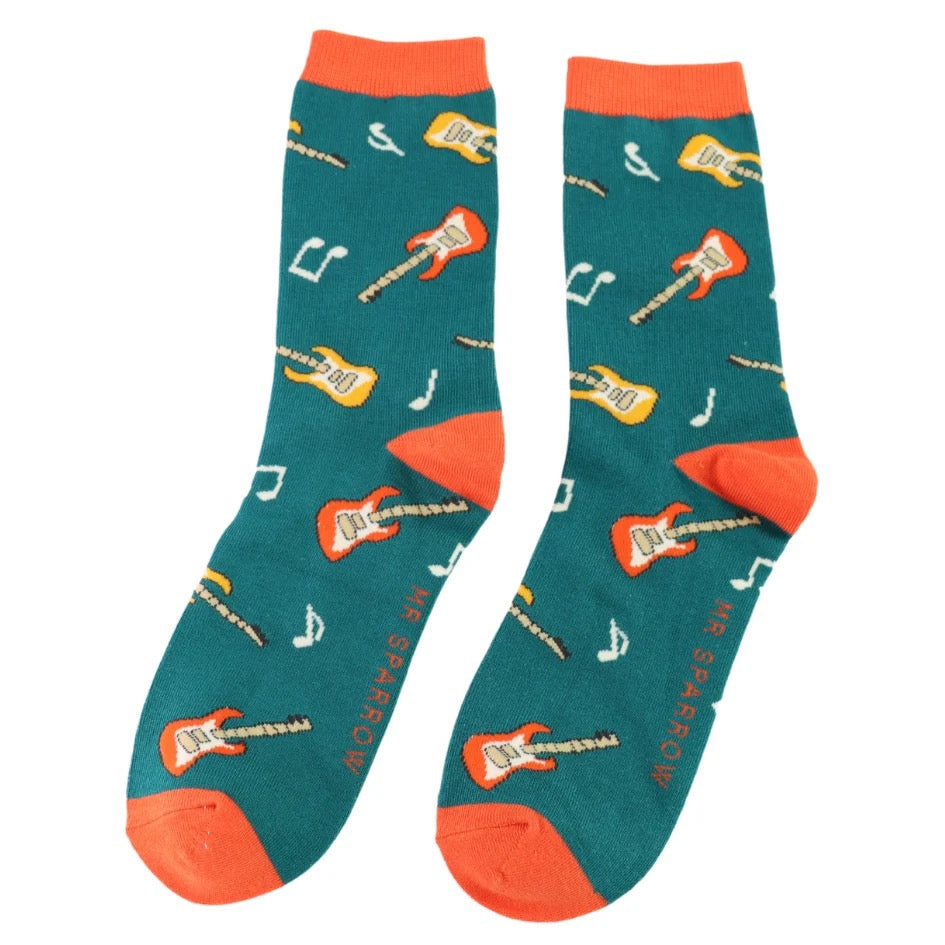 Mr Sparrow MENS Bamboo Ankle Socks - Guitars - Teal