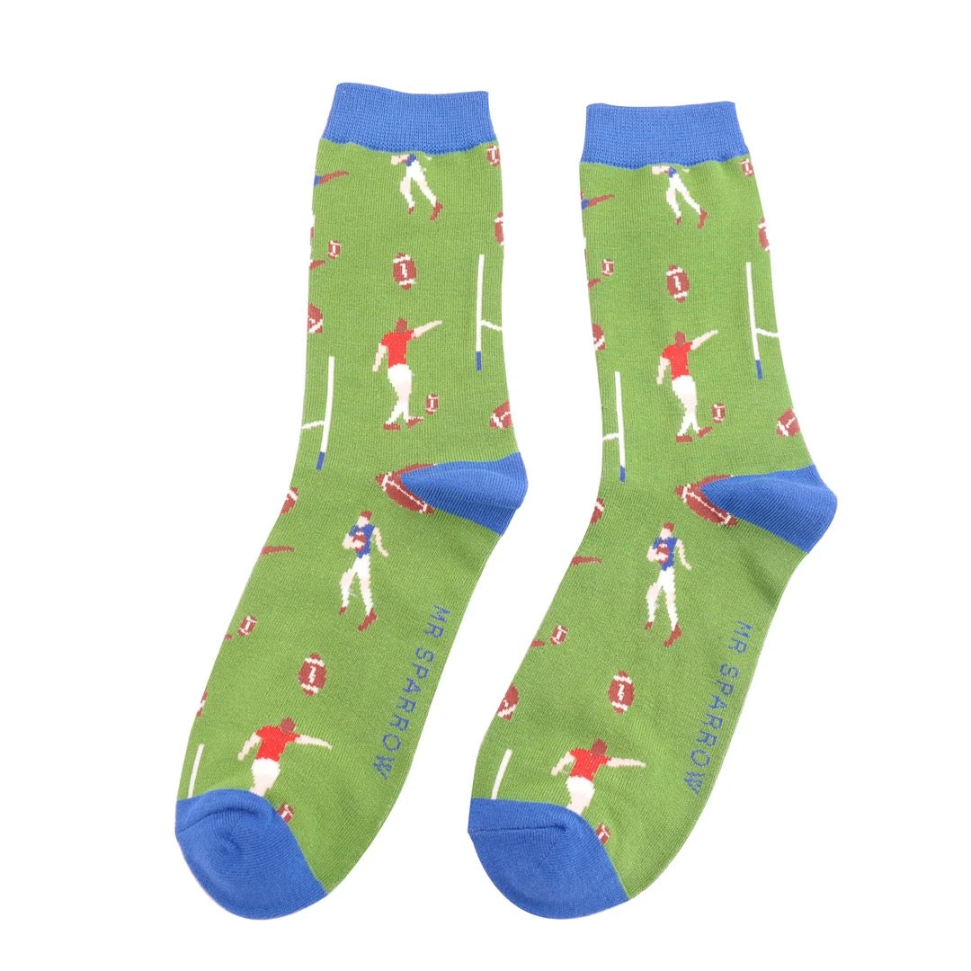 Mr Sparrow MENS Bamboo Ankle Socks -Rugby Scene - Green