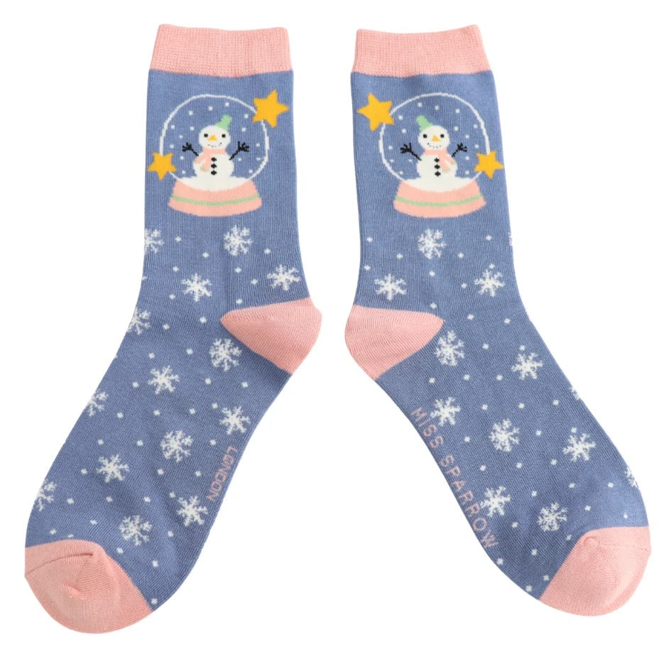 Miss Sparrow Bamboo Ankle Socks - Snow Globes - Denim