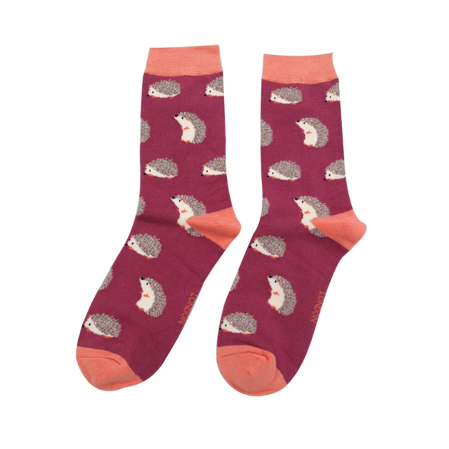Miss Sparrow Bamboo Ankle Socks - Cute Hedgehogs - Berry