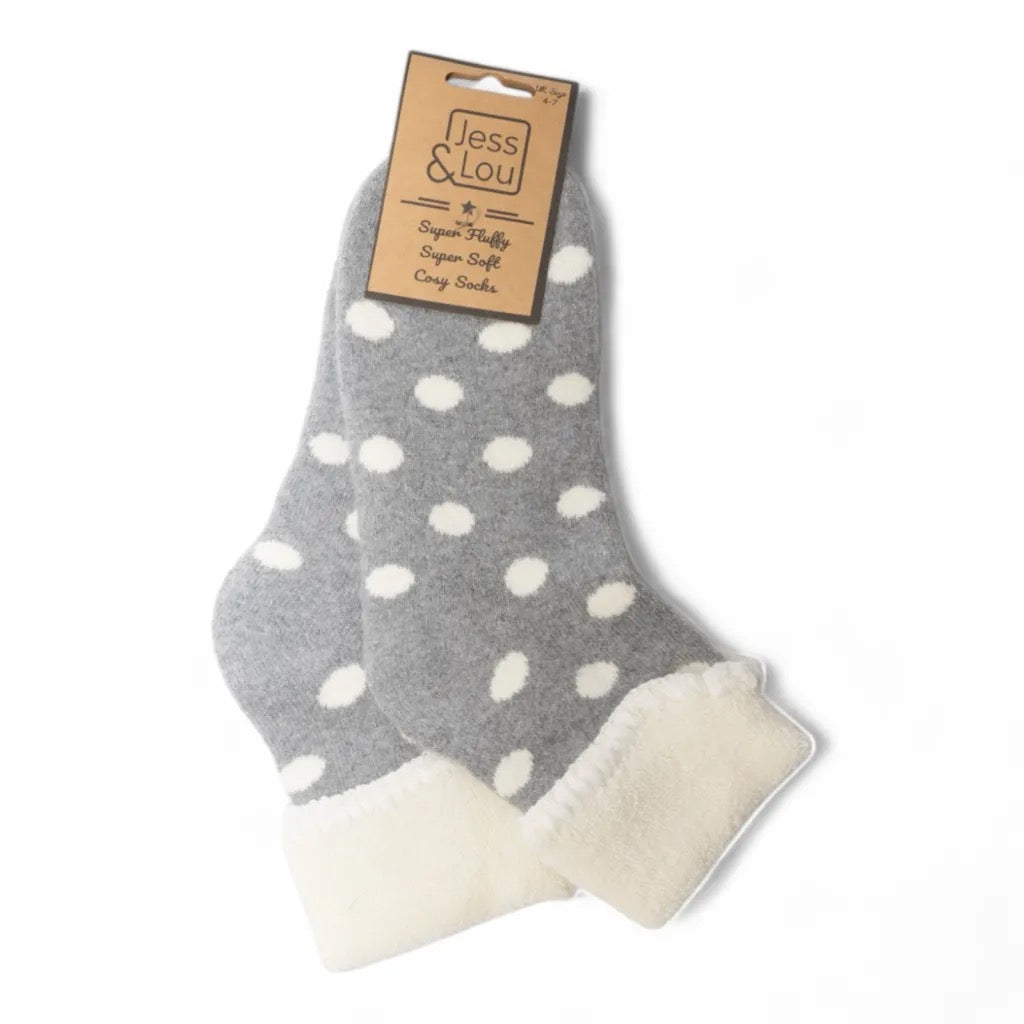 Jess and Lou - Grey & White - Spots Print Cosy Cuff Socks