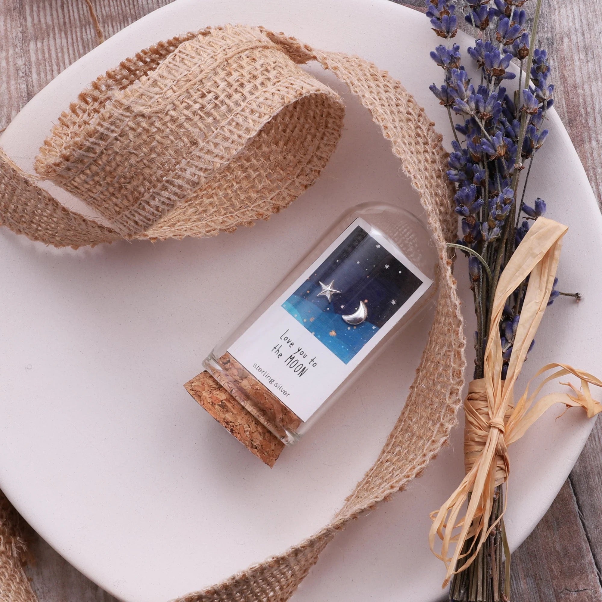 Love You to Moon - Terrarium Bottle - Sterling Silver Moon & Star Stud Earrings
