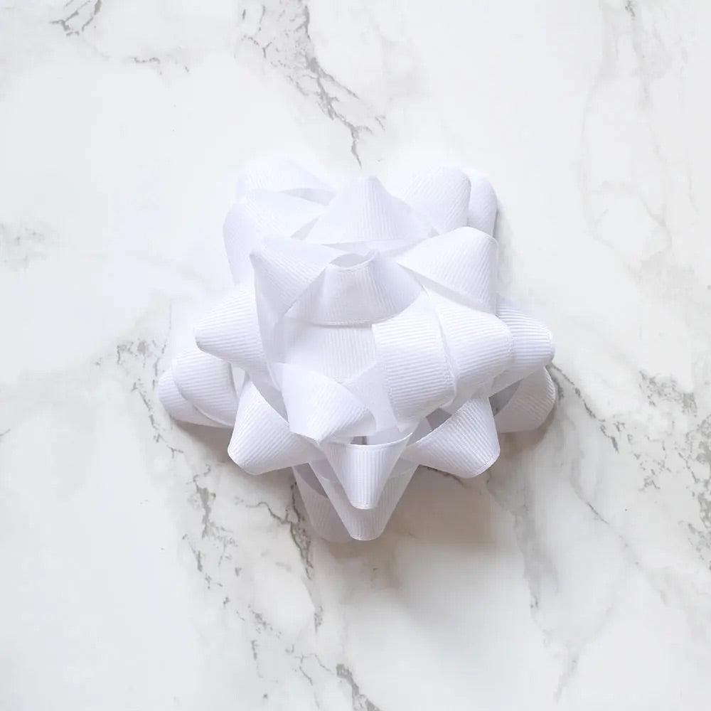 This grosgrain bow in white by Belly Button is the luxury finishing touch to your gift wrapping.