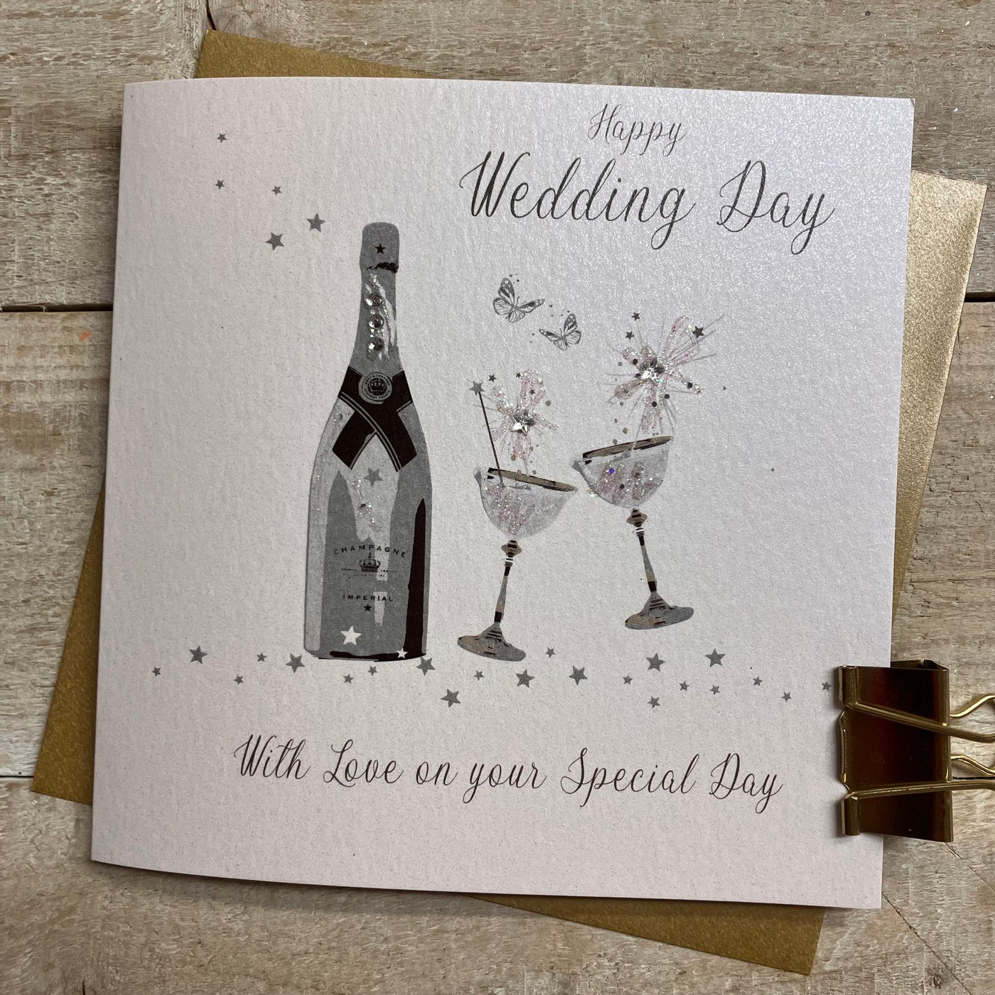 Happy Wedding Day Champagne & Glasses Card - White Cotton Cards
