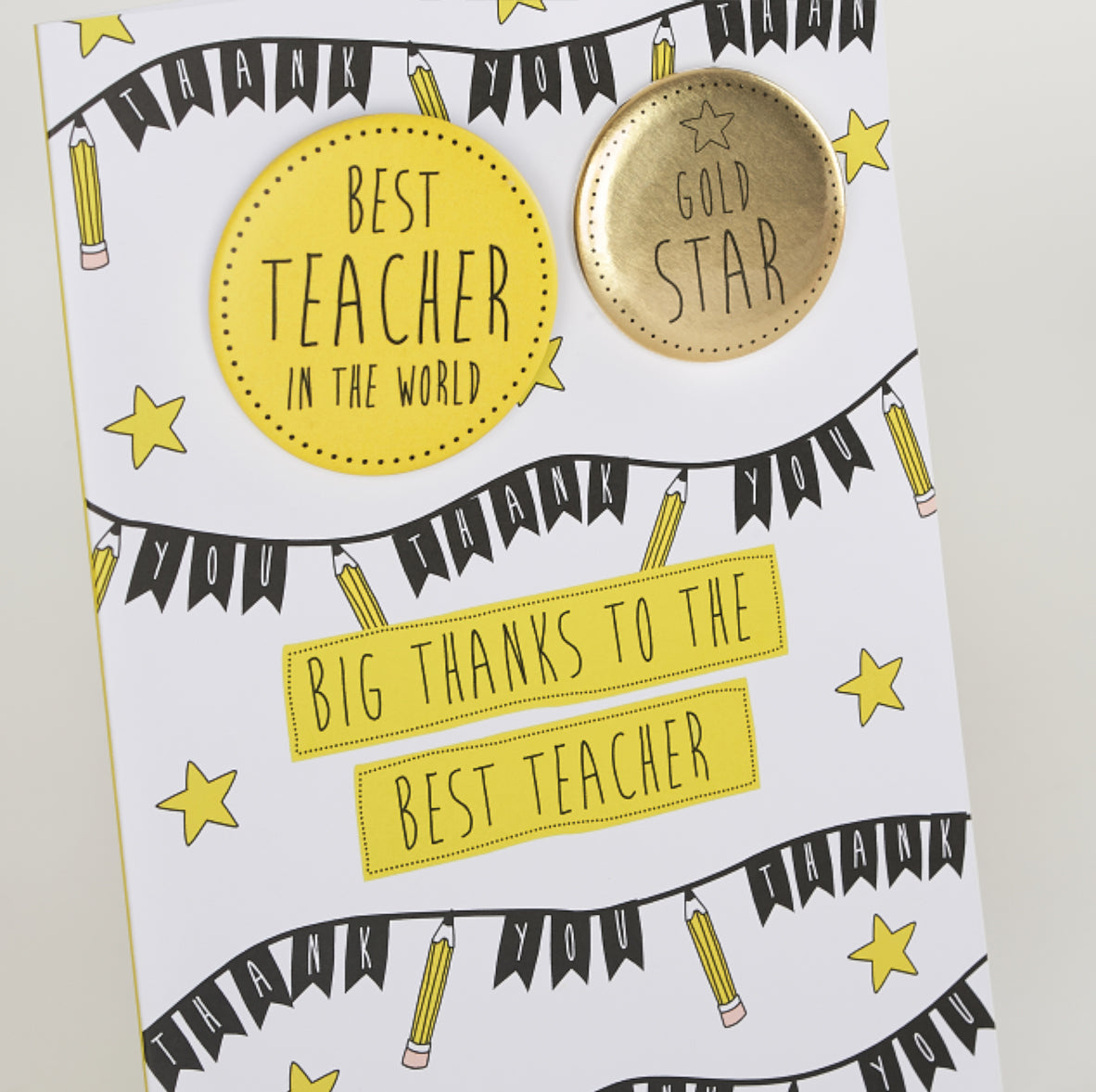 This Best Teacher card is bursting with fun and is perfect for thanking them this year. Everyone deserves a badge and this one has two!