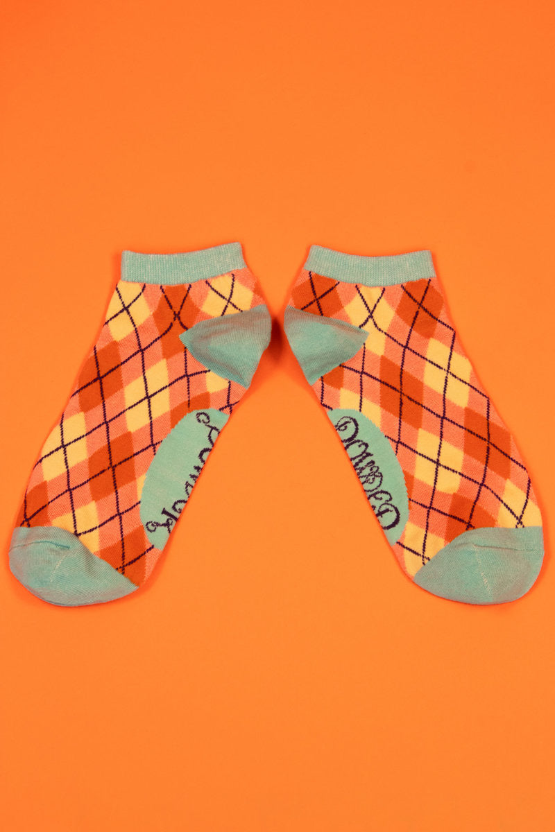 Powder Pink Argyll Bamboo Ladies Trainer Socks - Candy