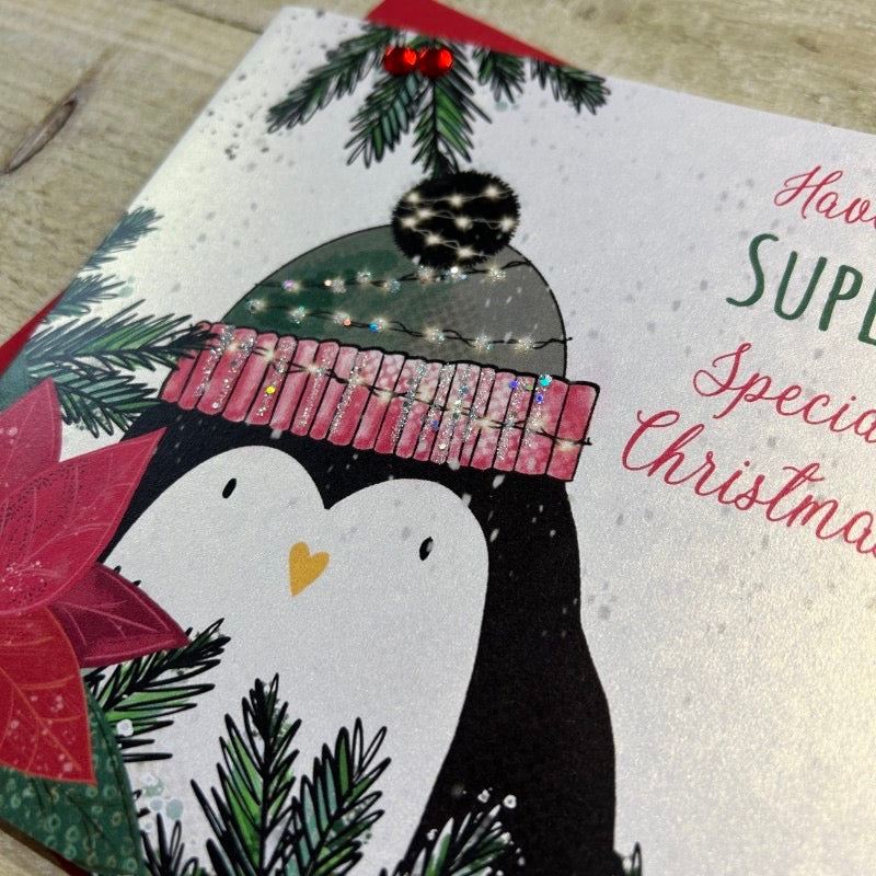 White Cotton Cards Have a Super Special Christmas Penguin Card