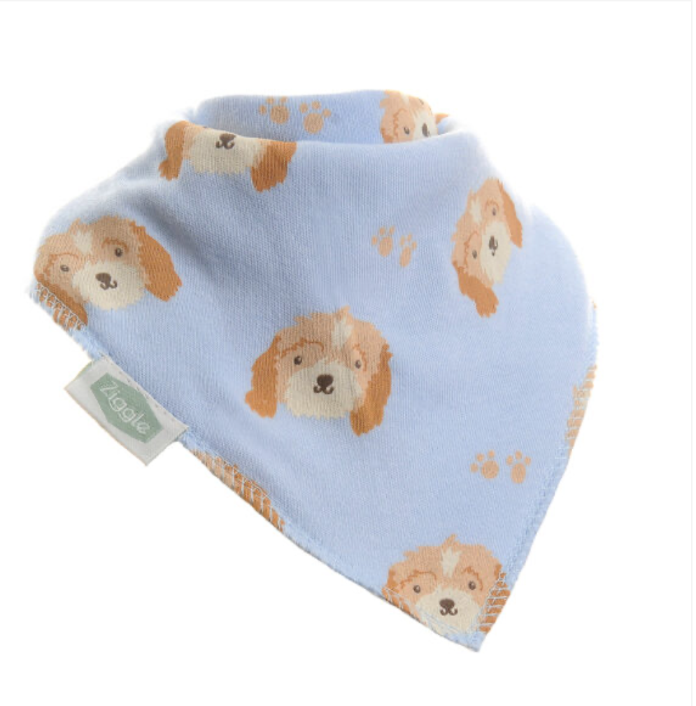 Ziggle Cockapoo Puppy Print Dribble Bib - Powder Blue